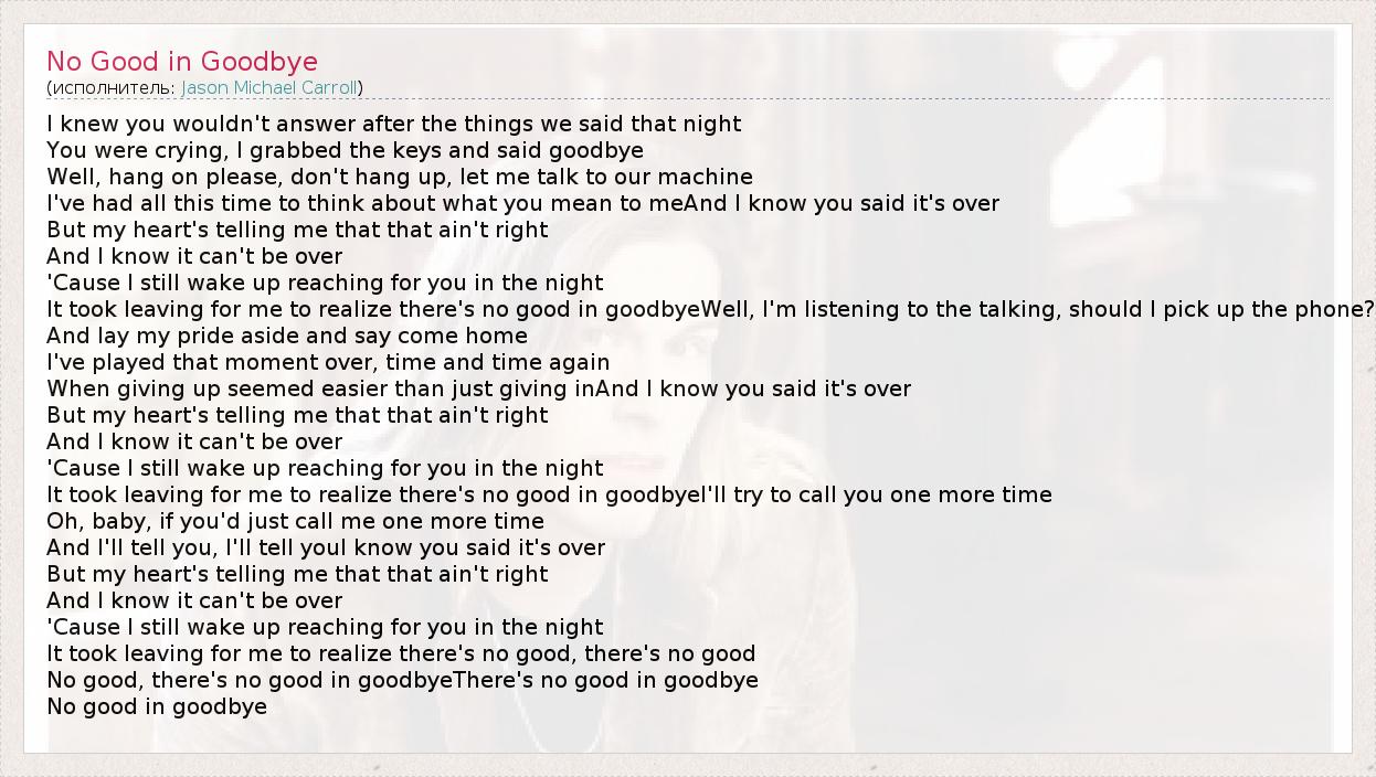 А как ты думаешь, о чем песня "No Good in Goodbye" ?