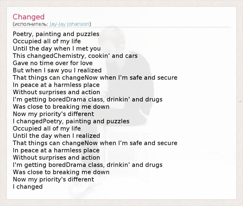 А как ты думаешь, о чем песня "Changed" ?
