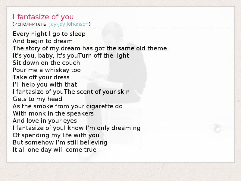 А как ты думаешь, о чем песня "I fantasize of you" ?