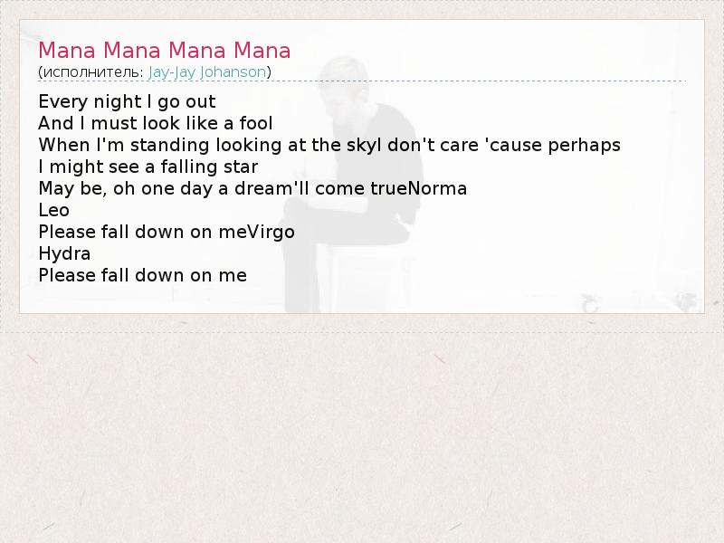 А как ты думаешь, о чем песня "Mana Mana Mana Mana" ?