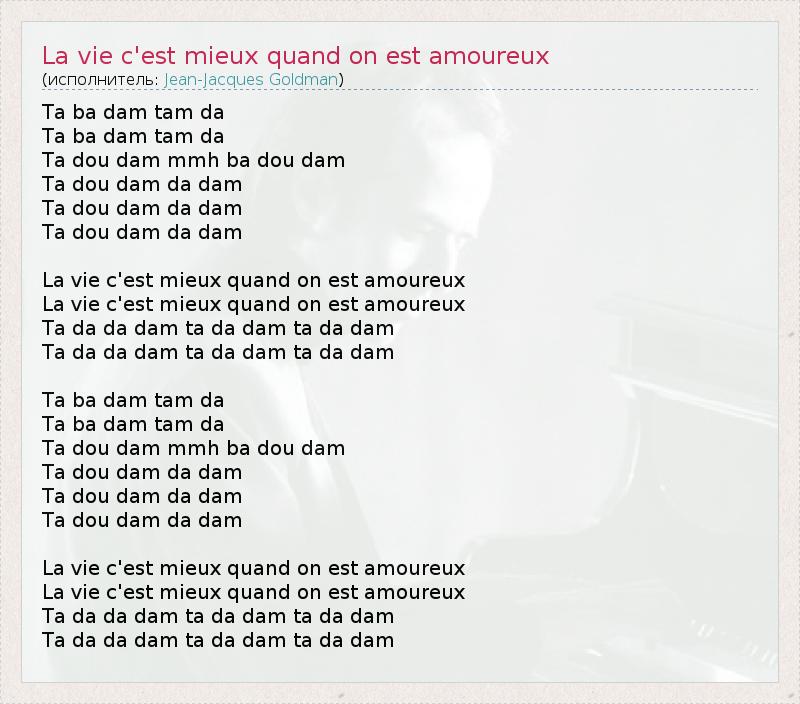 А как ты думаешь, о чем песня "La vie c'est mieux quand on est amoureux" ?