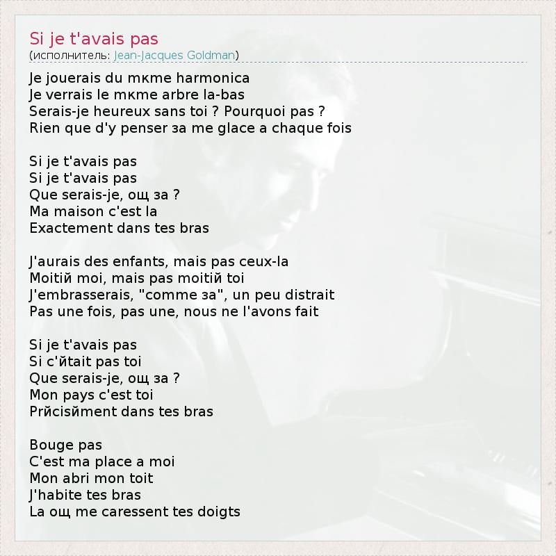 А как ты думаешь, о чем песня "Si je t'avais pas" ?