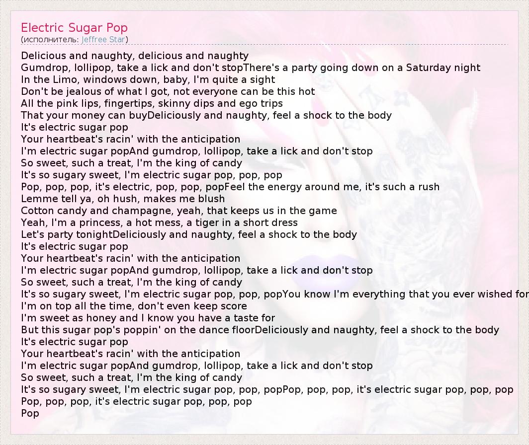 It's so sugary sweet, I'm electric sugar pop, pop, pop