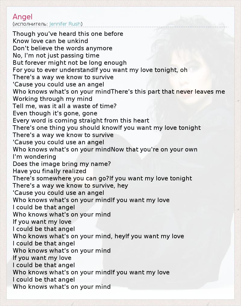 Though you've heard this one before Know love can be unkind Don't believe the words anymore No, I'm not just passing time But forever might not be long enough For you to ever understandIf you want my love tonight, oh There's a way we know to survive 'Cause you could use an angel Who knows what's on your mindThere's this part that never leaves me Working through my mind Tell me, was it all a waste of time? Even though it's gone, gone Every word is coming straight from this heart There's one thing you should knowIf you want my love tonight There's a way we know to survive 'Cause you could use an angel Who knows what's on your mindNow that you're on your own I'm wondering Does the image bring my name? Have you finally realized There's somewhere you can go?If you want my love tonight There's a way we know to survive, hey 'Cause you could use an angel Who knows what's on your mindIf you want my love I could be that angel Who knows what's on your mind If you want my love I could be that angel Who knows what's on your mind, heyIf you want my love I could be that angel Who knows what's on your mind If you want my love I could be that angel Who knows what's on your mindIf you want my love I could be that angel Who knows what's on your mind
