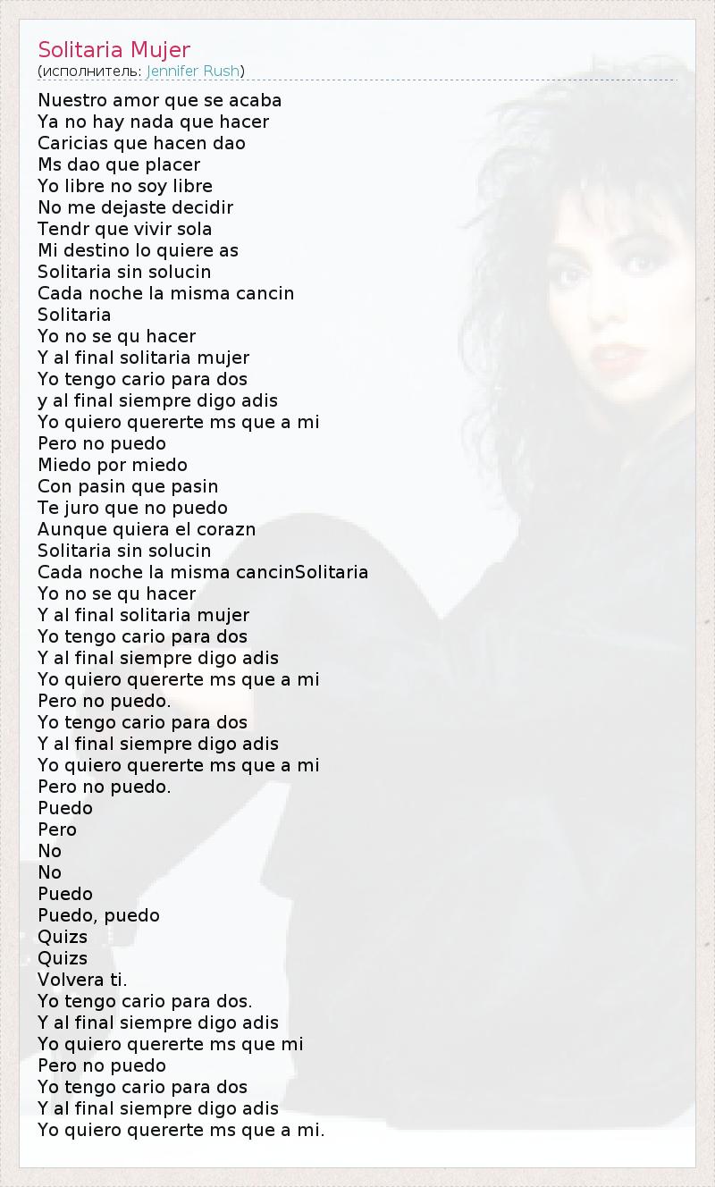 А как ты думаешь, о чем песня "Solitaria Mujer" ?