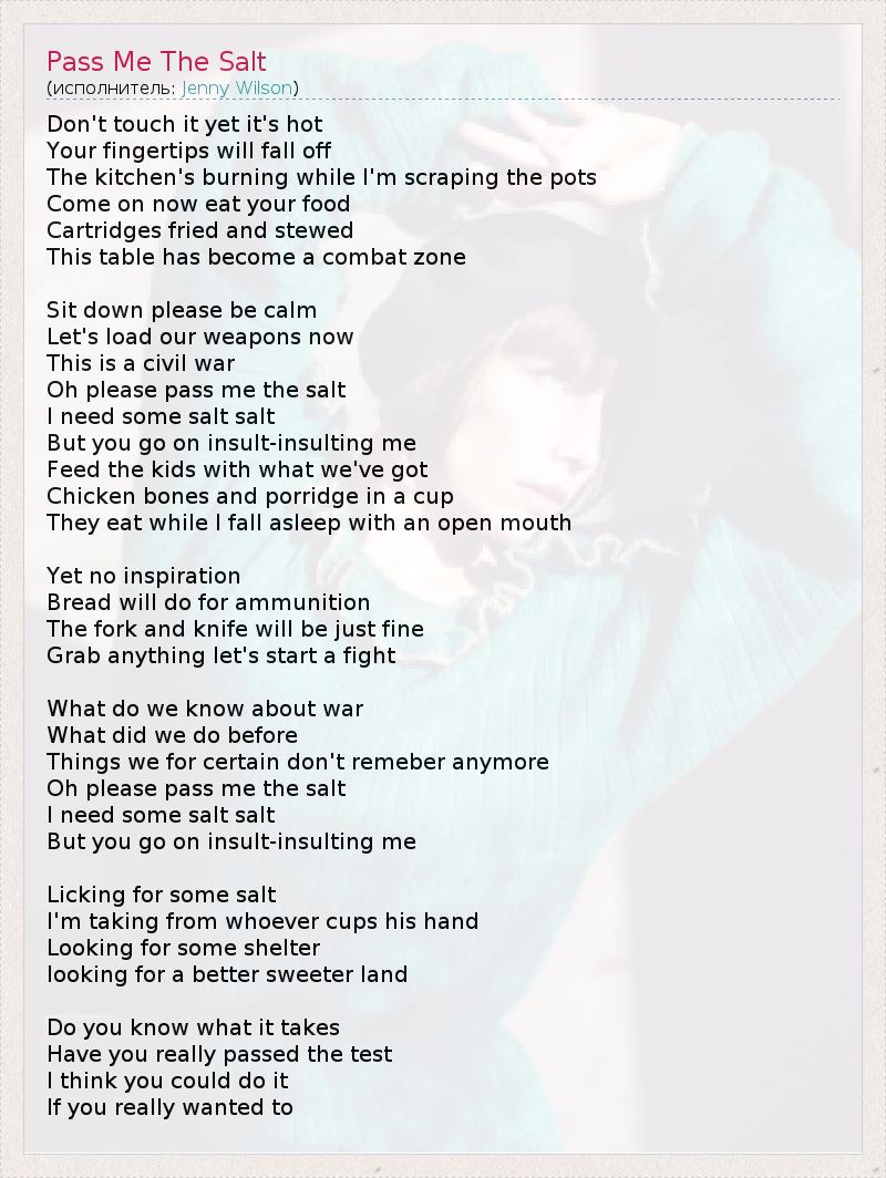 А как ты думаешь, о чем песня "Pass Me The Salt" ?