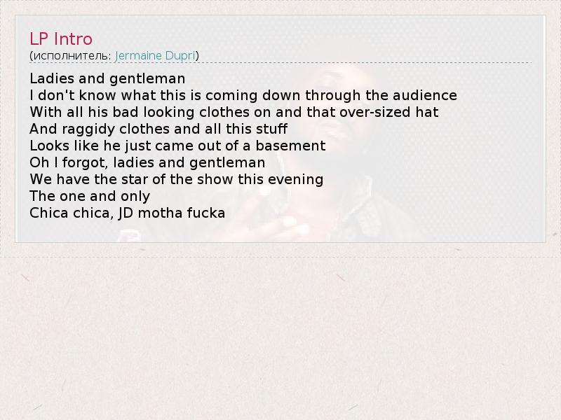 Это интересно:Карьера Jermaine Dupri началась с забавного эпизода. Его отец работал менеджером в Атланте и координирировал концерт знаменитой Diana Ross в 1982 году, так вот Jermaine, к удивлению всех пришедших на это мероприятие, умудрился пробраться на сцену и потанцевать рядом с певицей. В то время ему еще не было десяти. После этого Dupri начал колесить по стране и отметился дружбой с Herbie... продолжение