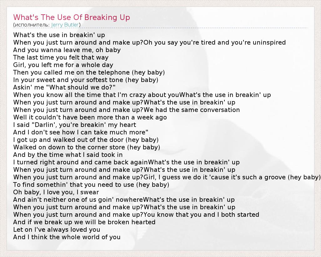 А как ты думаешь, о чем песня "What's The Use Of Breaking Up" ?
