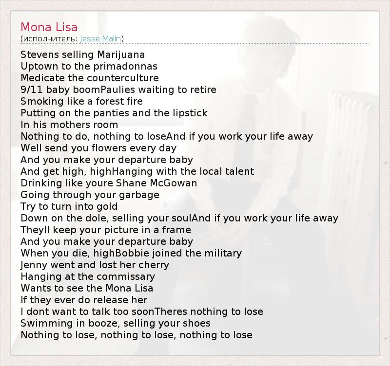 А как ты думаешь, о чем песня "Mona Lisa" ?