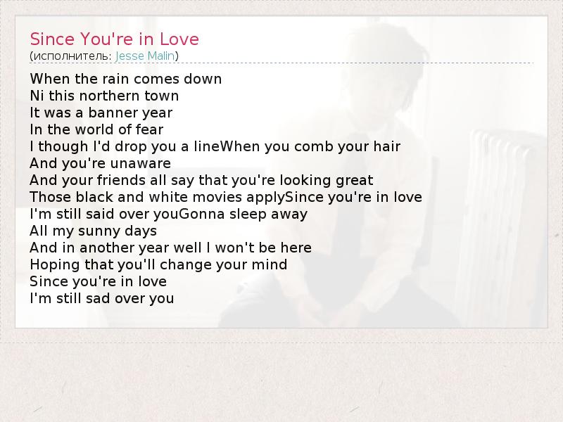 А как ты думаешь, о чем песня "Since You're in Love" ?