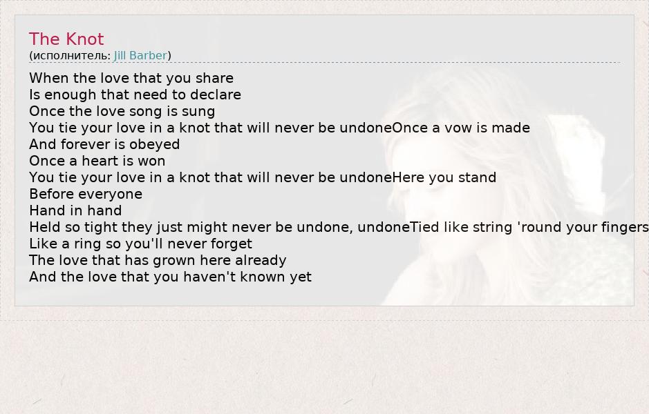 You tie your love in a knot that will never be undoneOnce a vow is made