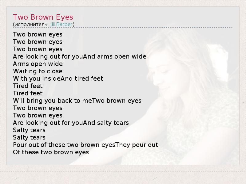 А как ты думаешь, о чем песня "Two Brown Eyes" ?