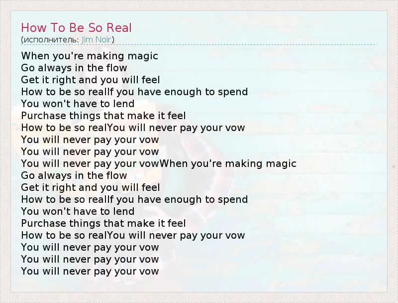 А как ты думаешь, о чем песня "How To Be So Real" ?