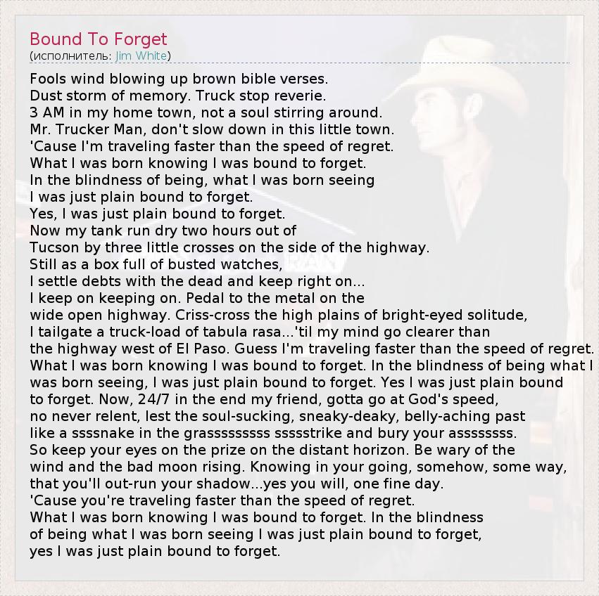 А как ты думаешь, о чем песня "Bound To Forget" ?