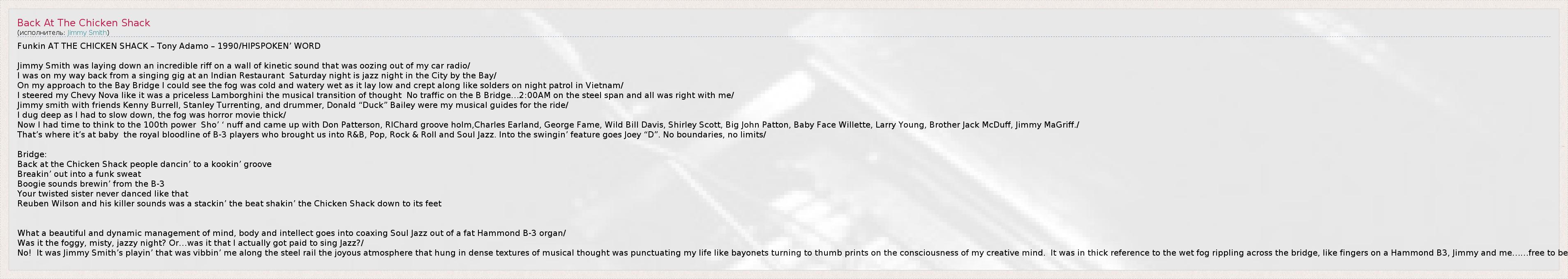 А как ты думаешь, о чем песня "Back At The Chicken Shack" ?