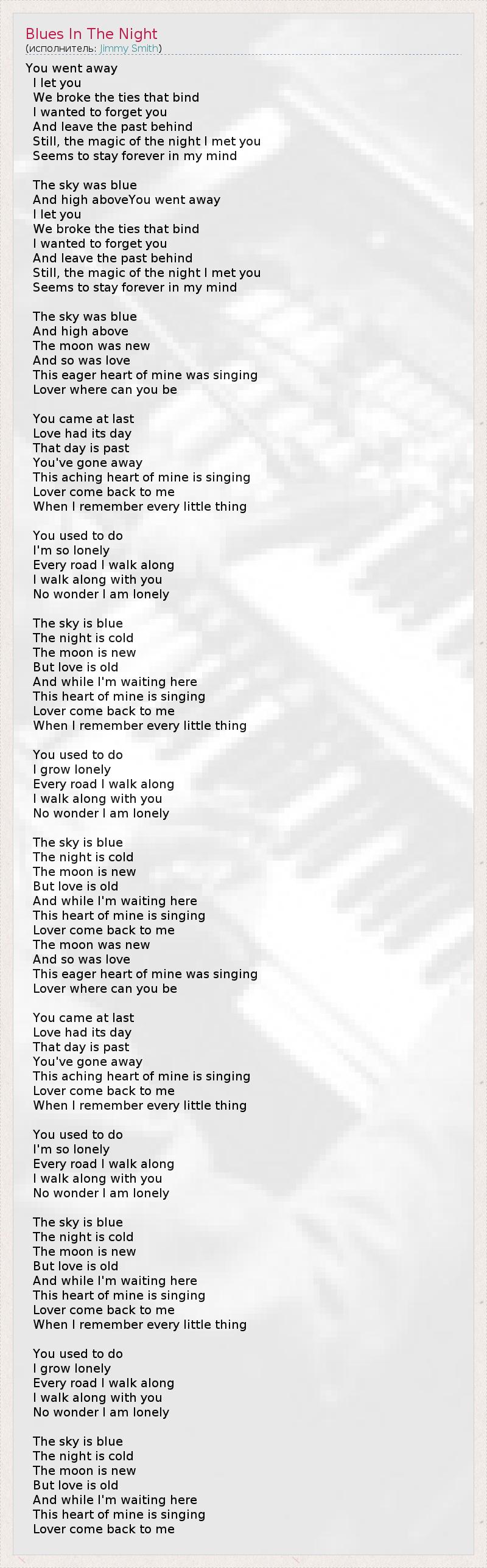 А как ты думаешь, о чем песня "Blues In The Night" ?
