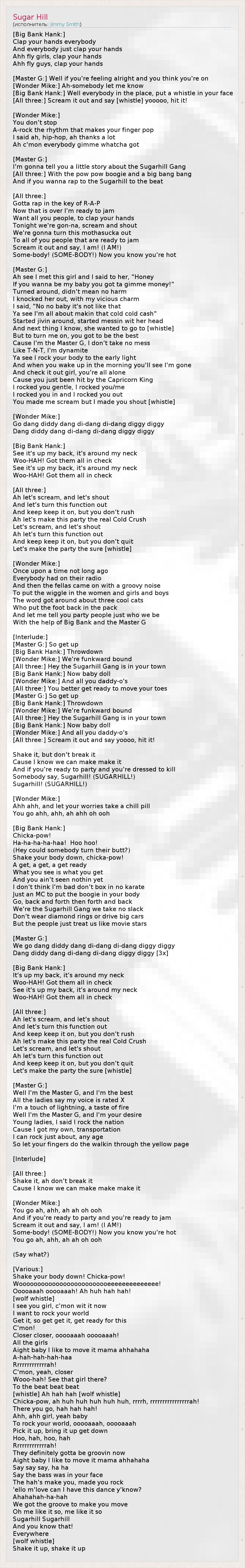 А как ты думаешь, о чем песня "Sugar Hill" ?