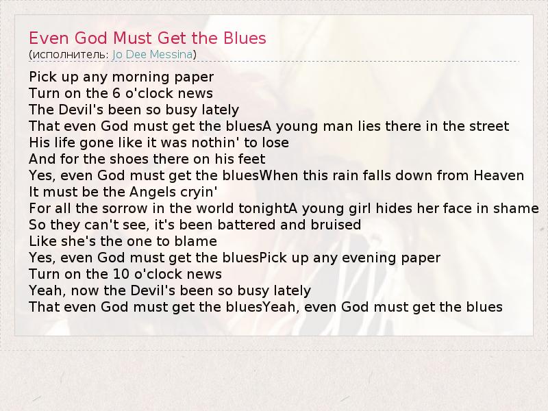 А как ты думаешь, о чем песня "Even God Must Get the Blues" ?