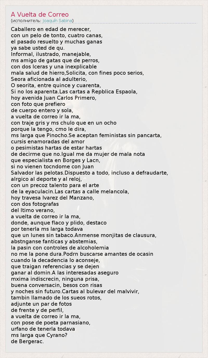 А как ты думаешь, о чем песня "A Vuelta de Correo" ?