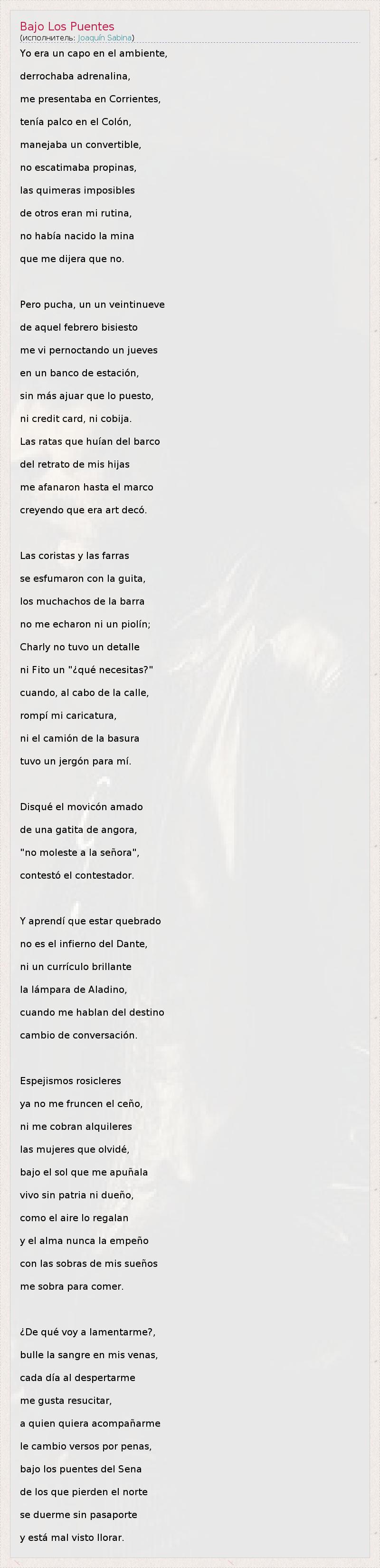 А как ты думаешь, о чем песня "Bajo Los Puentes" ?