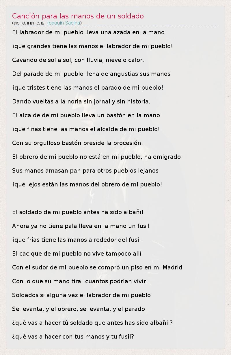 ГлавнаяИсполнителиJoaquín SabinaCanción para las manos de un soldado