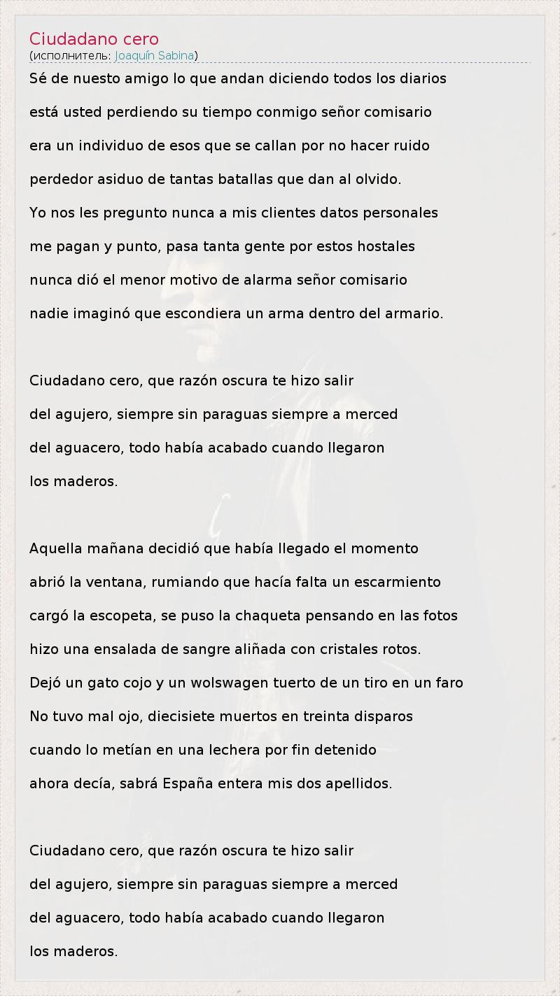 А как ты думаешь, о чем песня "Ciudadano cero" ?