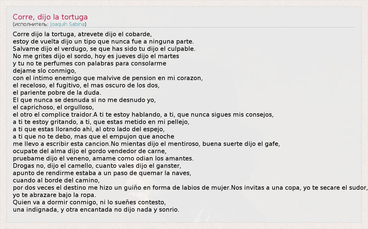 А как ты думаешь, о чем песня "Corre, dijo la tortuga" ?