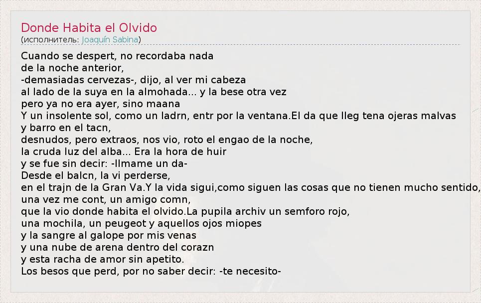 А как ты думаешь, о чем песня "Donde Habita el Olvido" ?