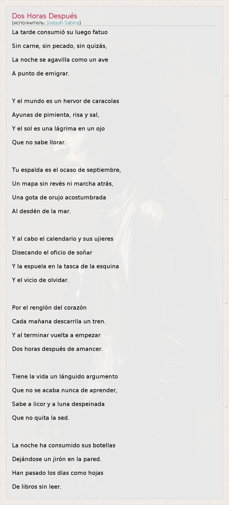 А как ты думаешь, о чем песня "Dos Horas Después" ?
