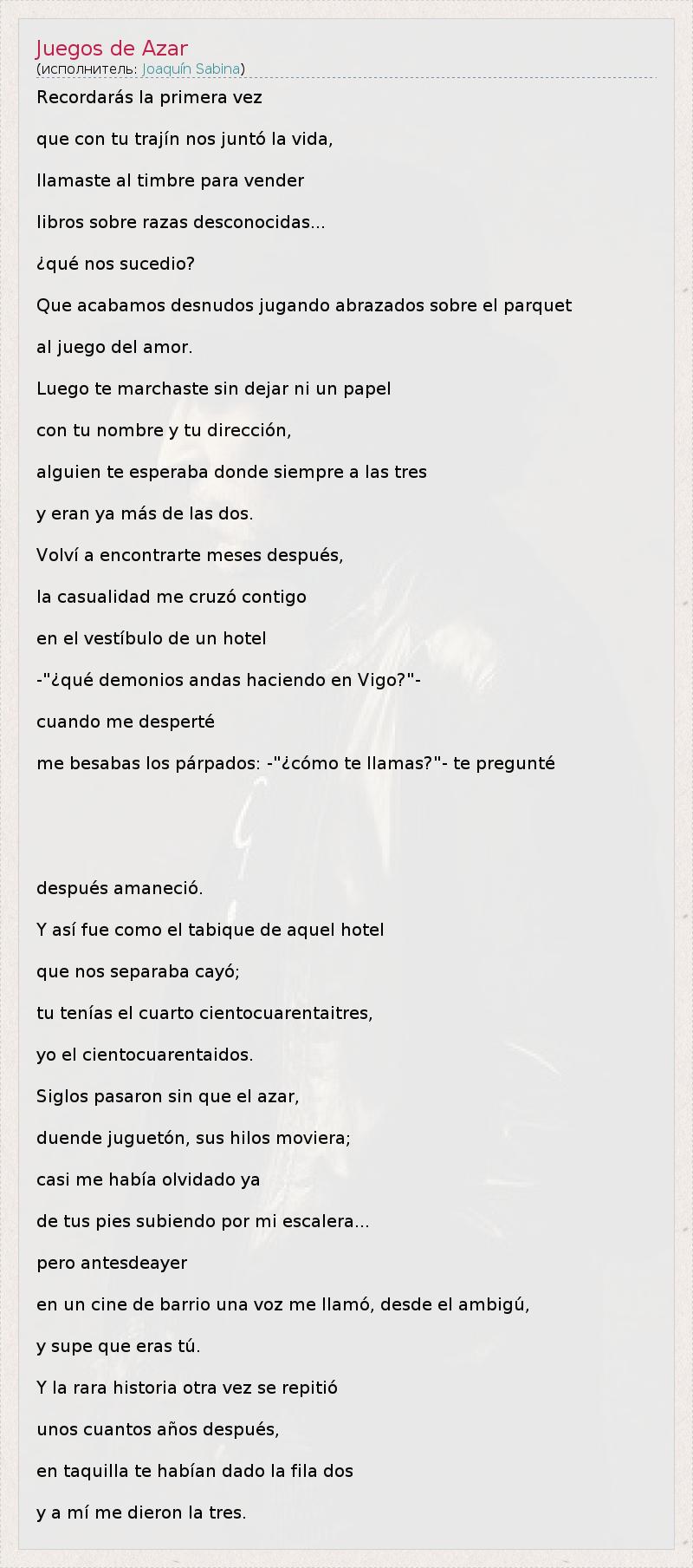 А как ты думаешь, о чем песня "Juegos de Azar" ?