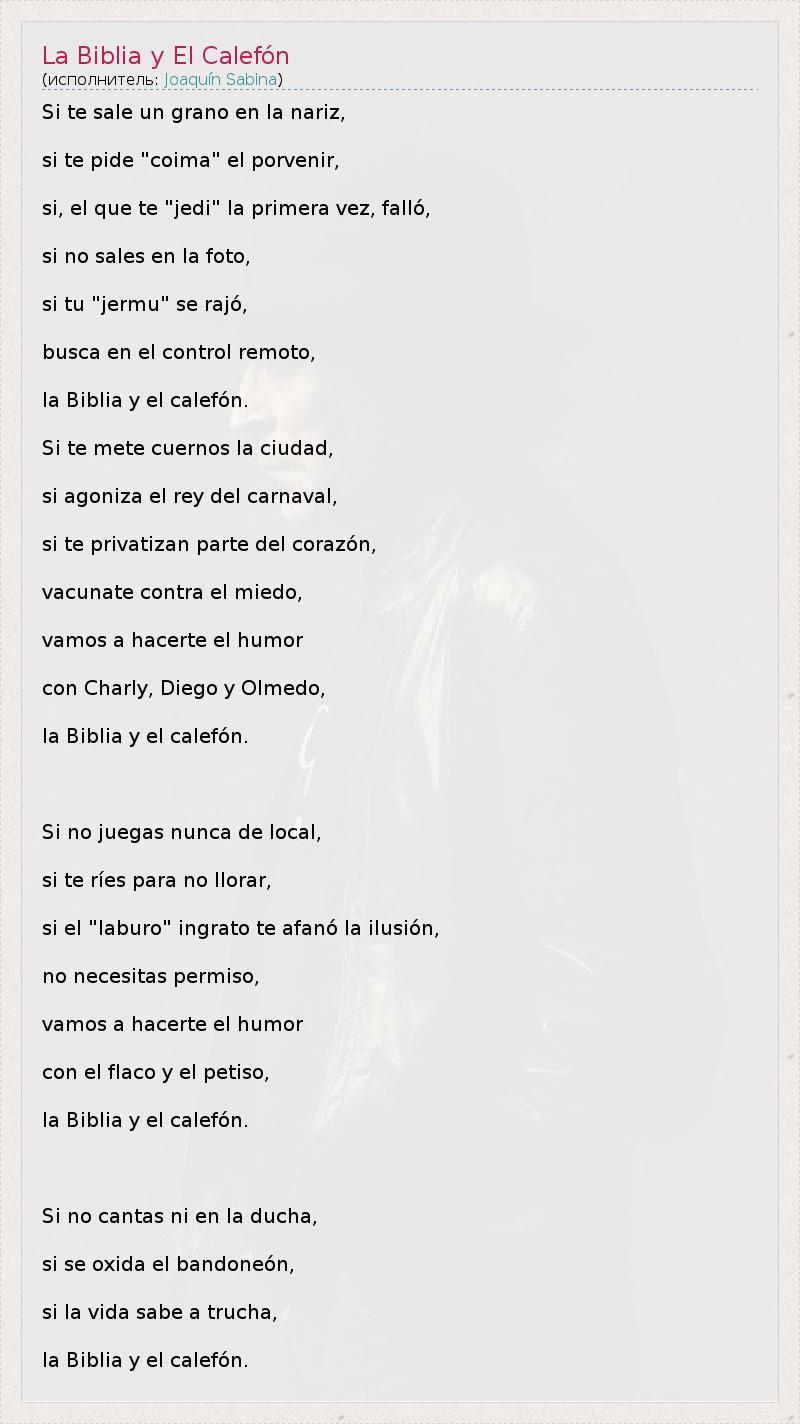 А как ты думаешь, о чем песня "La Biblia y El Calefón" ?