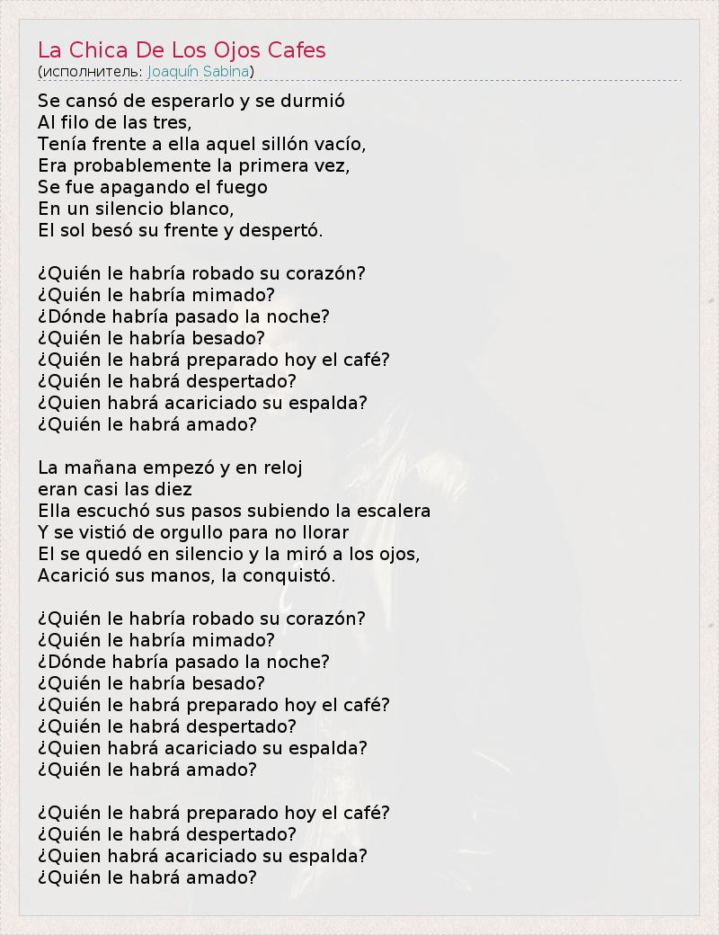 ГлавнаяИсполнителиJoaquín SabinaLa Chica De Los Ojos Cafes