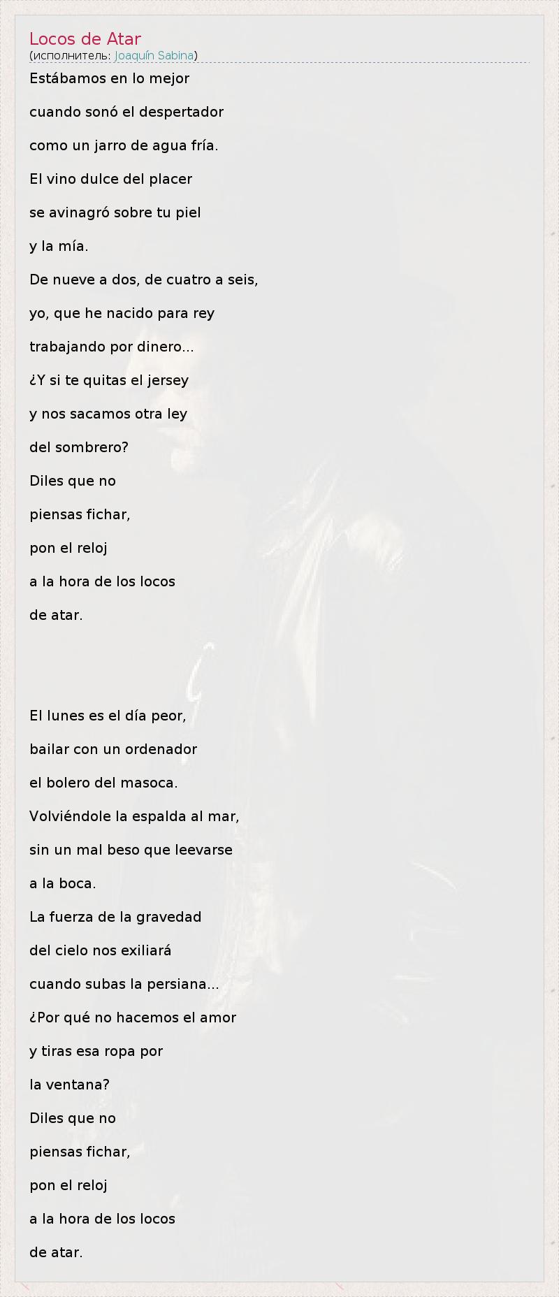 А как ты думаешь, о чем песня "Locos de Atar" ?