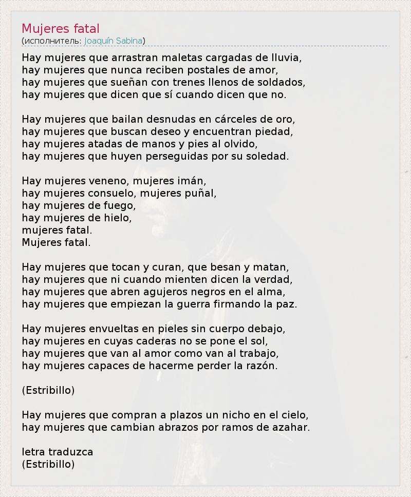А как ты думаешь, о чем песня "Mujeres fatal" ?