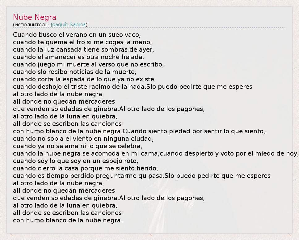 А как ты думаешь, о чем песня "Nube Negra" ?