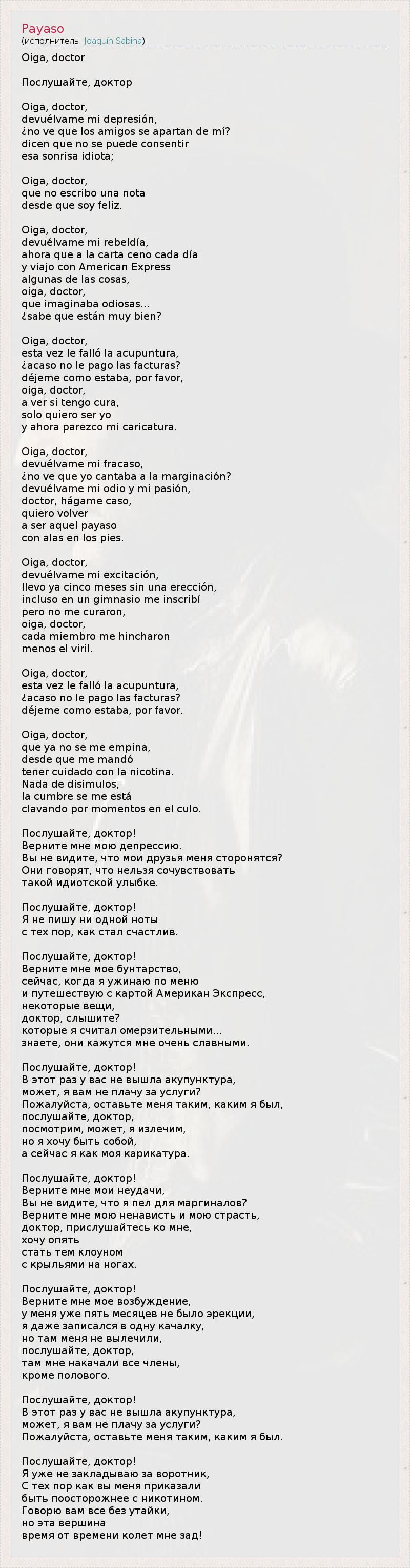 А как ты думаешь, о чем песня "Payaso" ?