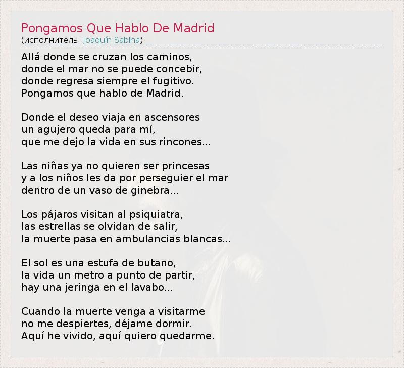 ГлавнаяИсполнителиJoaquín SabinaPongamos Que Hablo De Madrid