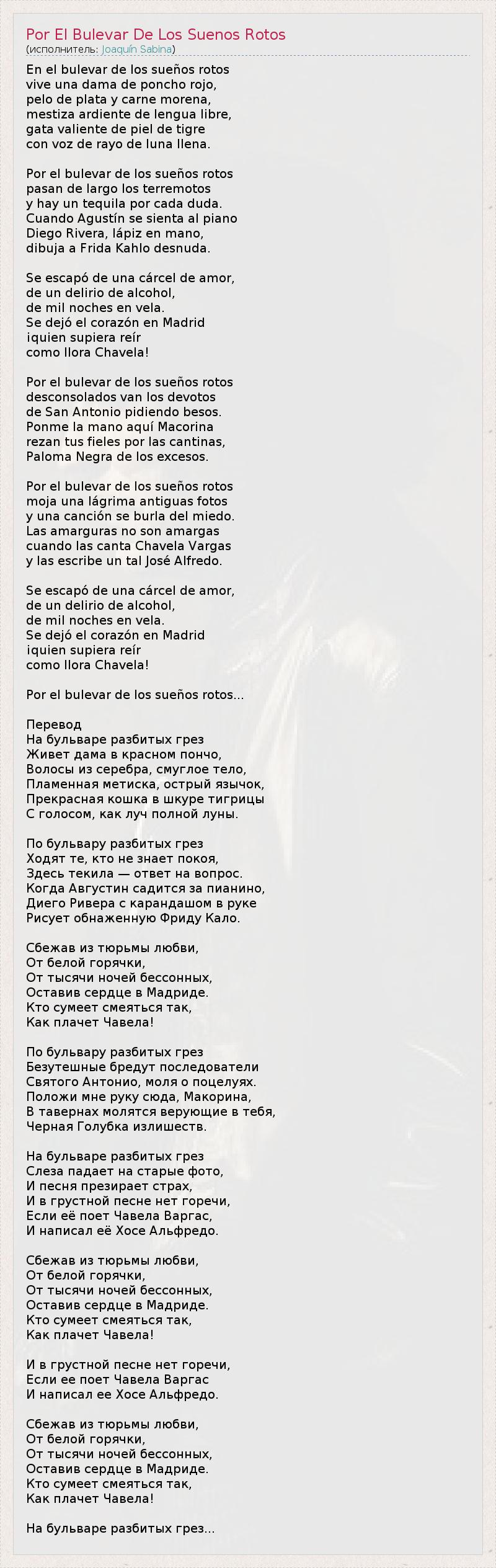 А как ты думаешь, о чем песня "Por El Bulevar De Los Suenos Rotos" ?