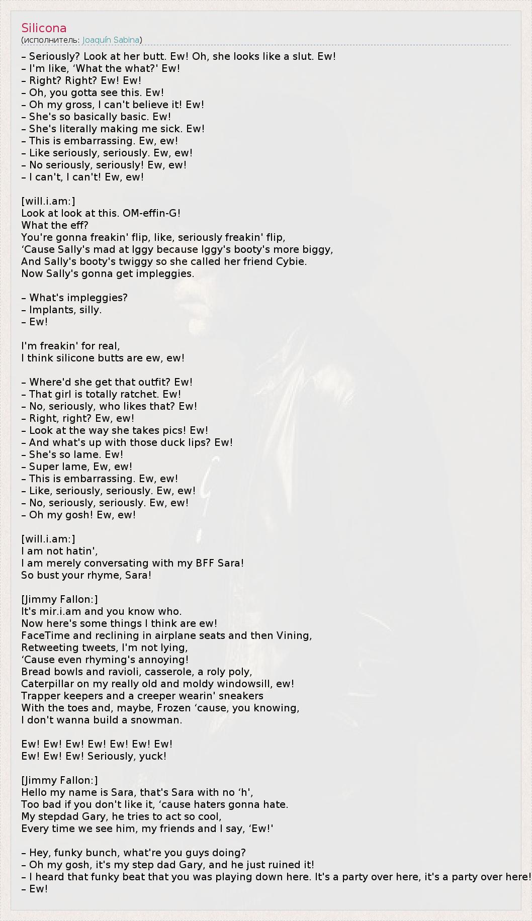 Мне кажется, силиконовые попы просто фу-у! Фу-у!