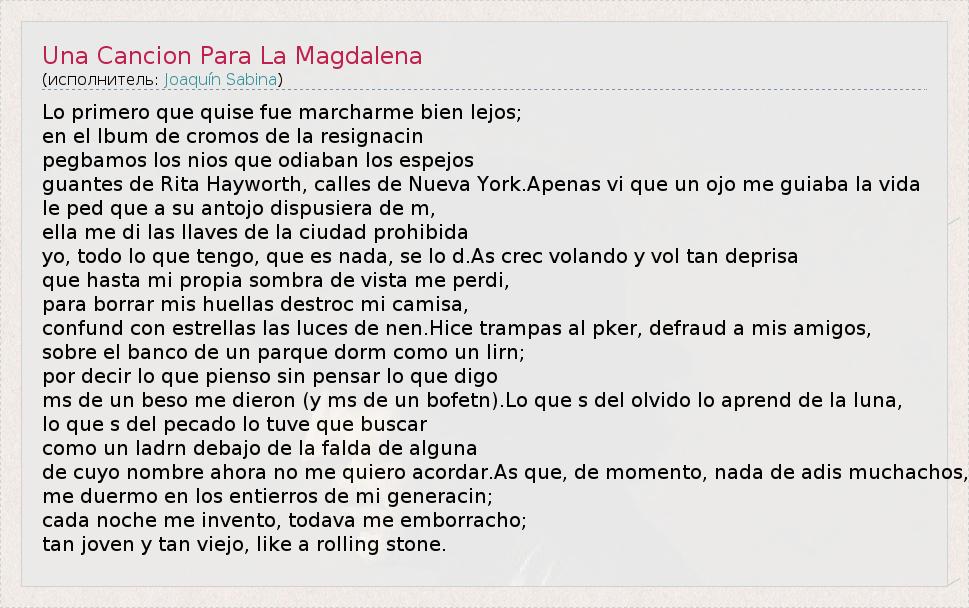 А как ты думаешь, о чем песня "Una Cancion Para La Magdalena" ?