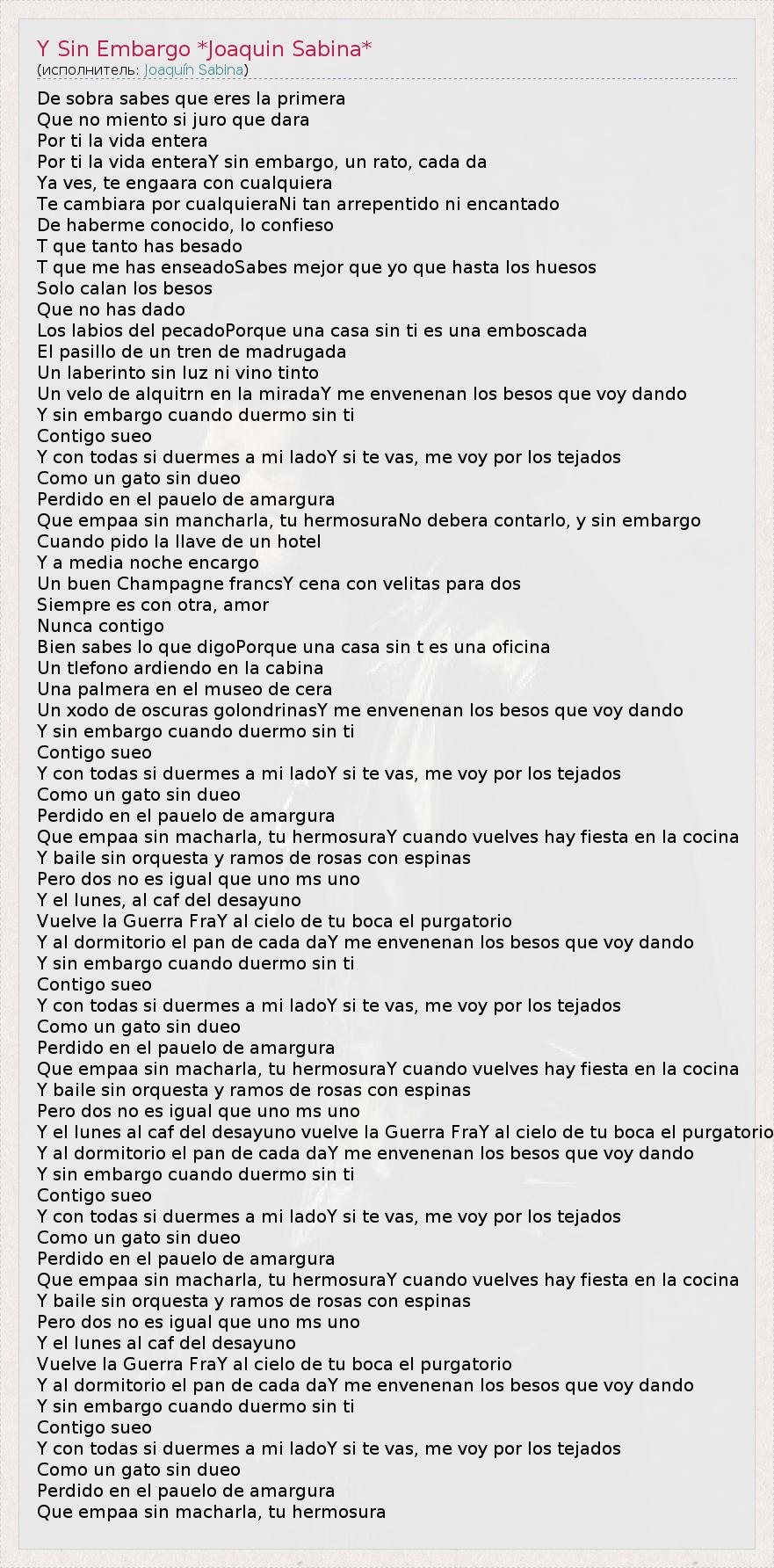 А как ты думаешь, о чем песня "Y Sin Embargo *Joaquin Sabina*" ?
