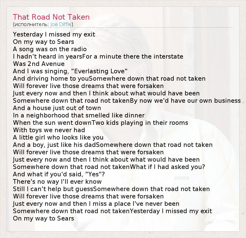 А как ты думаешь, о чем песня "That Road Not Taken" ?