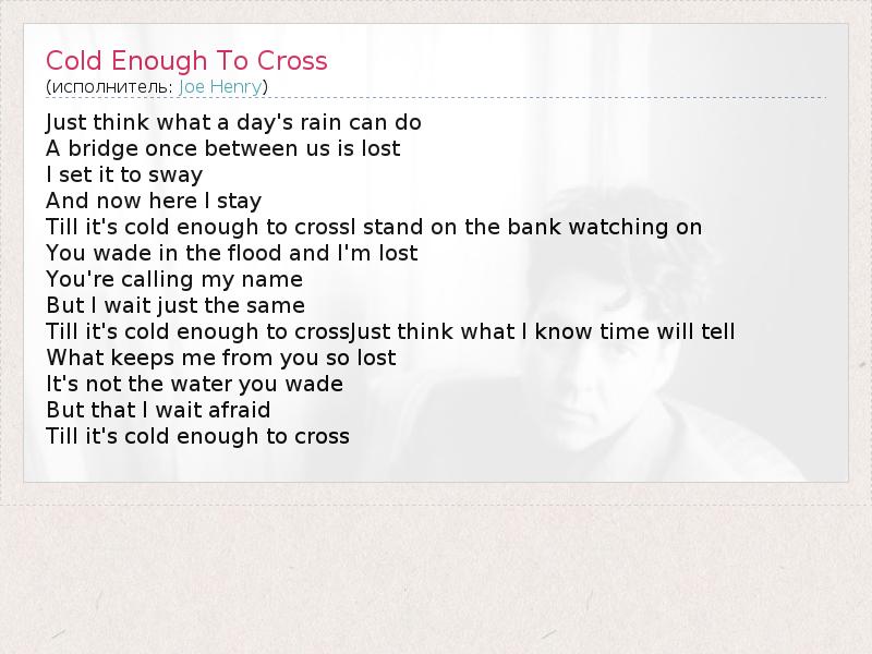 А как ты думаешь, о чем песня "Cold Enough To Cross" ?