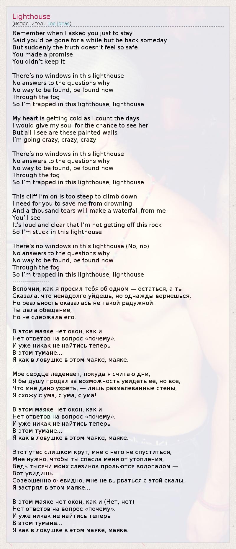 А как ты думаешь, о чем песня "Lighthouse" ?