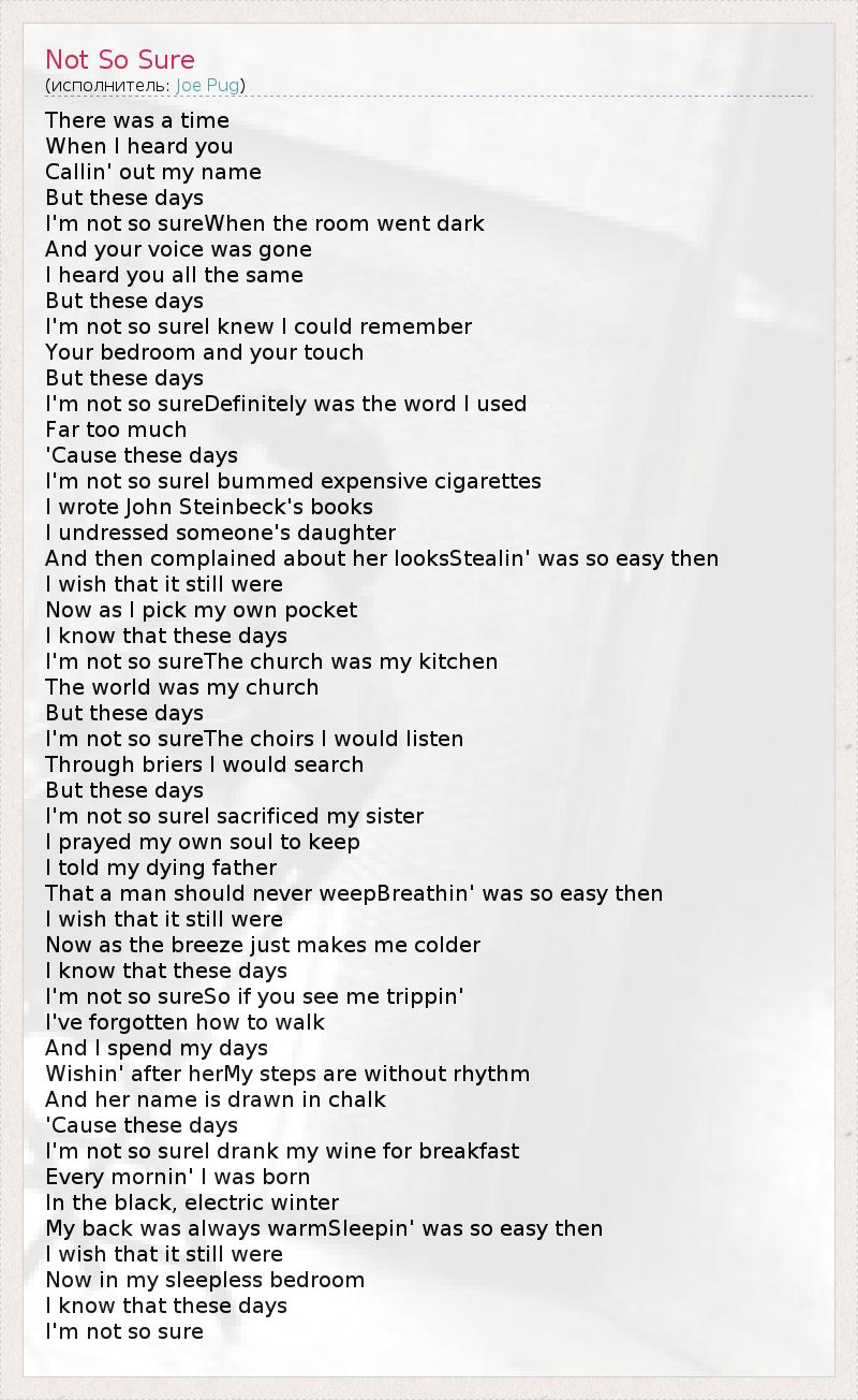 А как ты думаешь, о чем песня "Not So Sure" ?