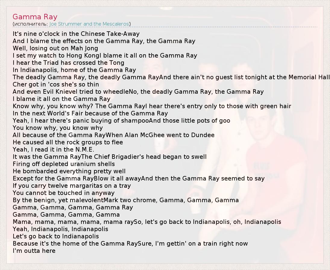Except for the Gamma RayBlow it all awayAnd then the Gamma Ray seemed to say