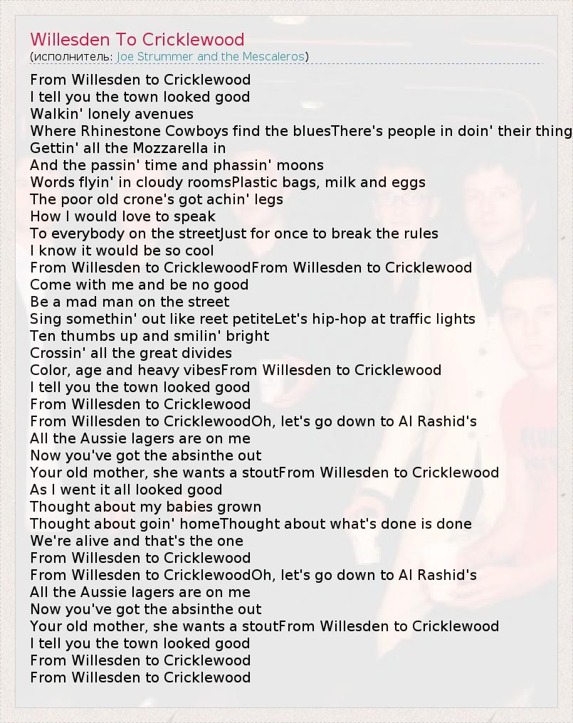 А как ты думаешь, о чем песня "Willesden To Cricklewood" ?