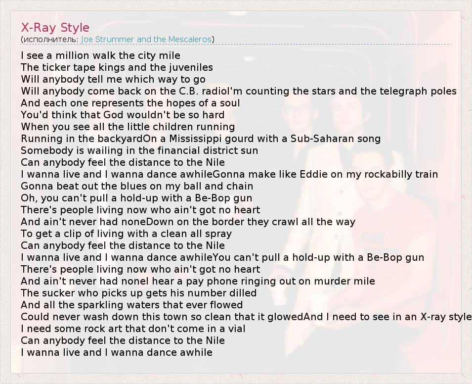 А как ты думаешь, о чем песня "X-Ray Style" ?