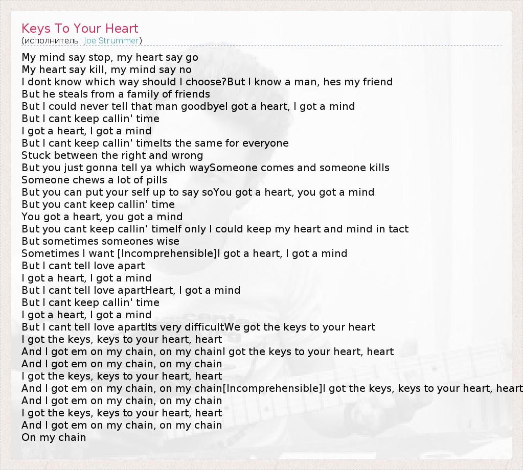 And I got em on my chain, on my chain[Incomprehensible]I got the keys, keys to your heart, heart