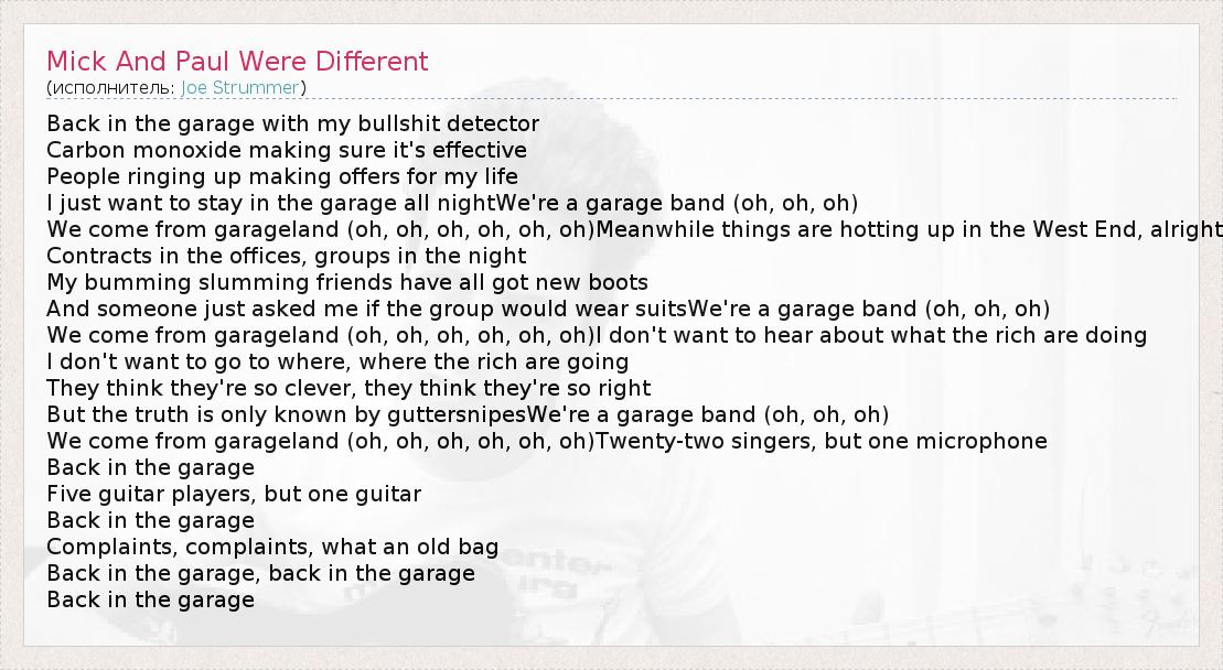 ГлавнаяИсполнителиJoe StrummerMick And Paul Were Different